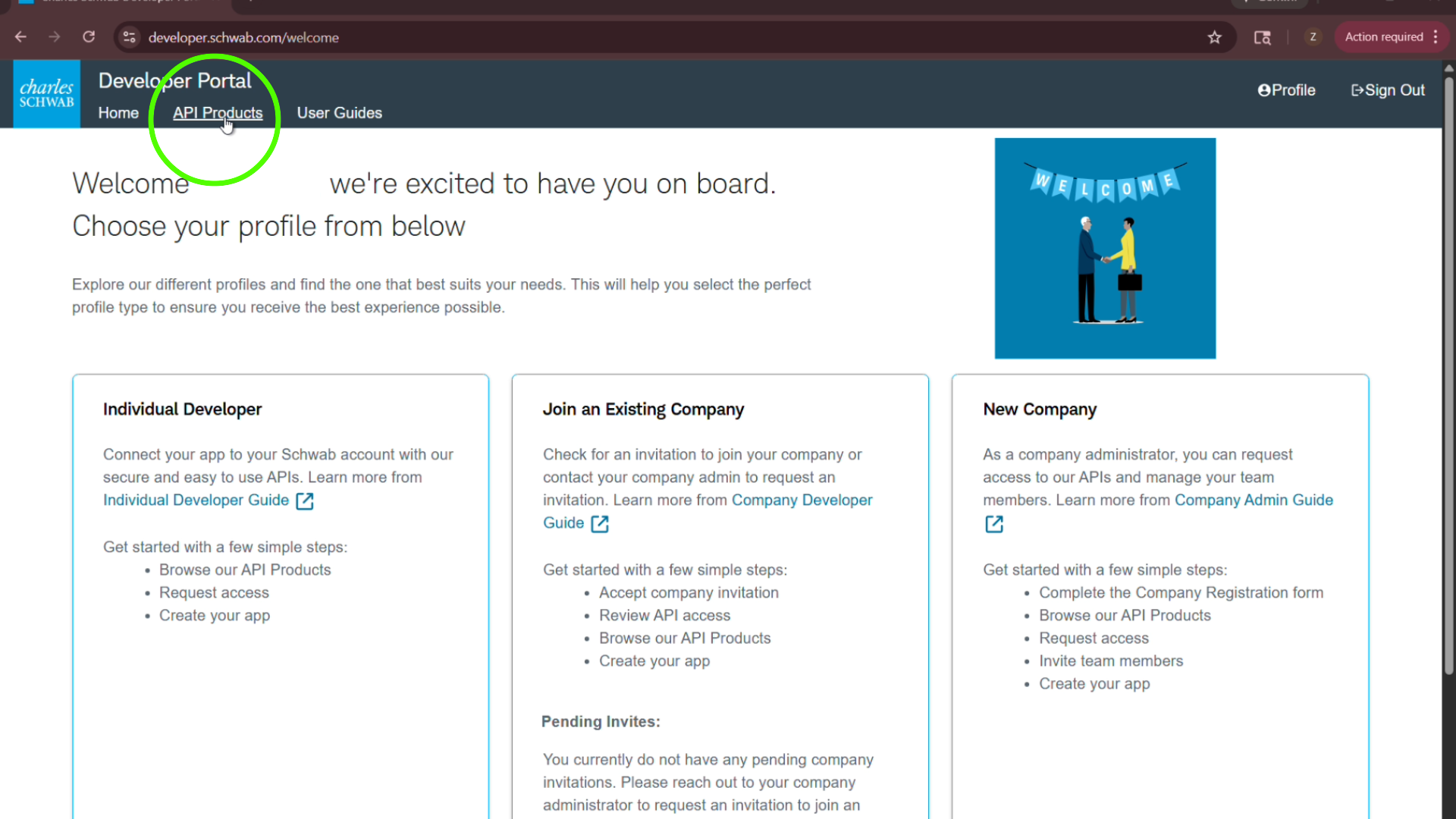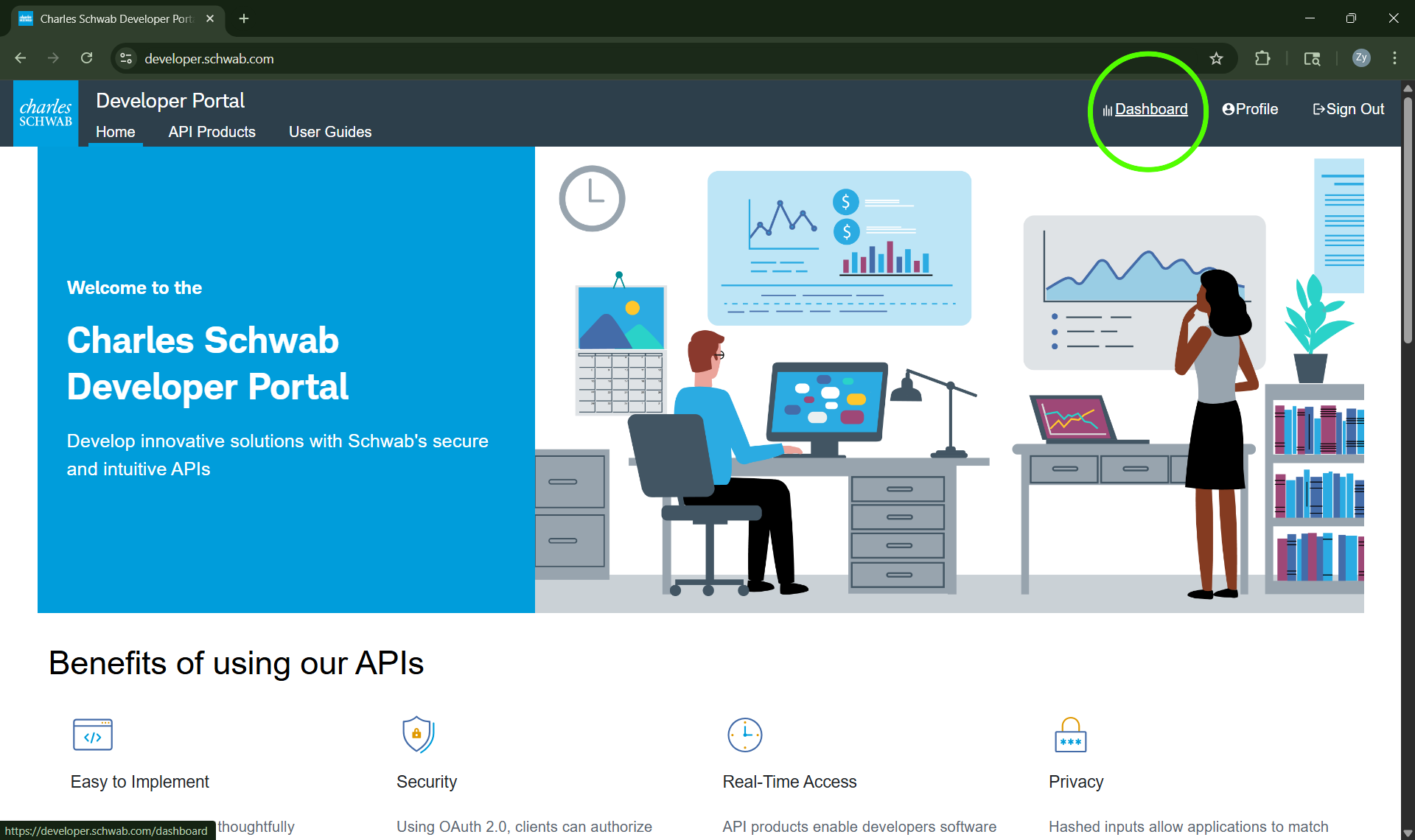 Access the Schwab Developer website here to begin the secure sign-up process.