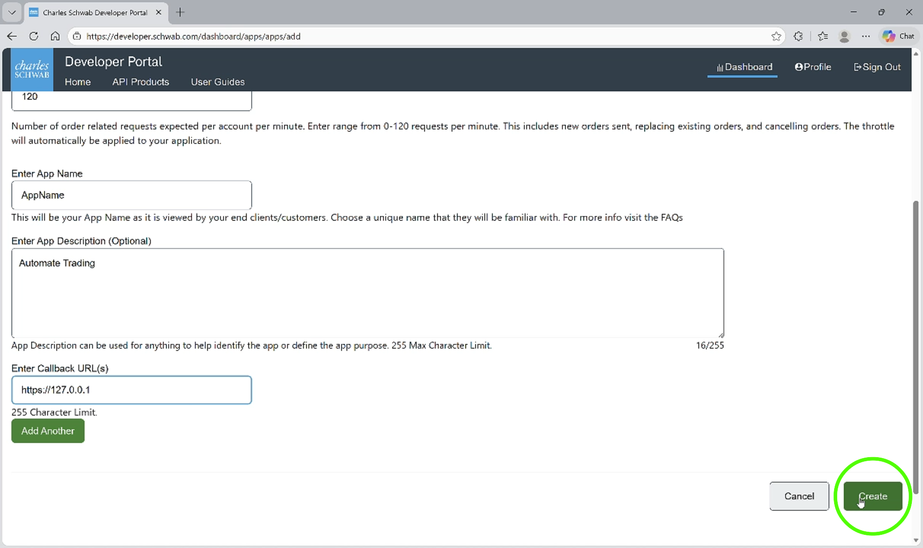 Create a Schwab Application
