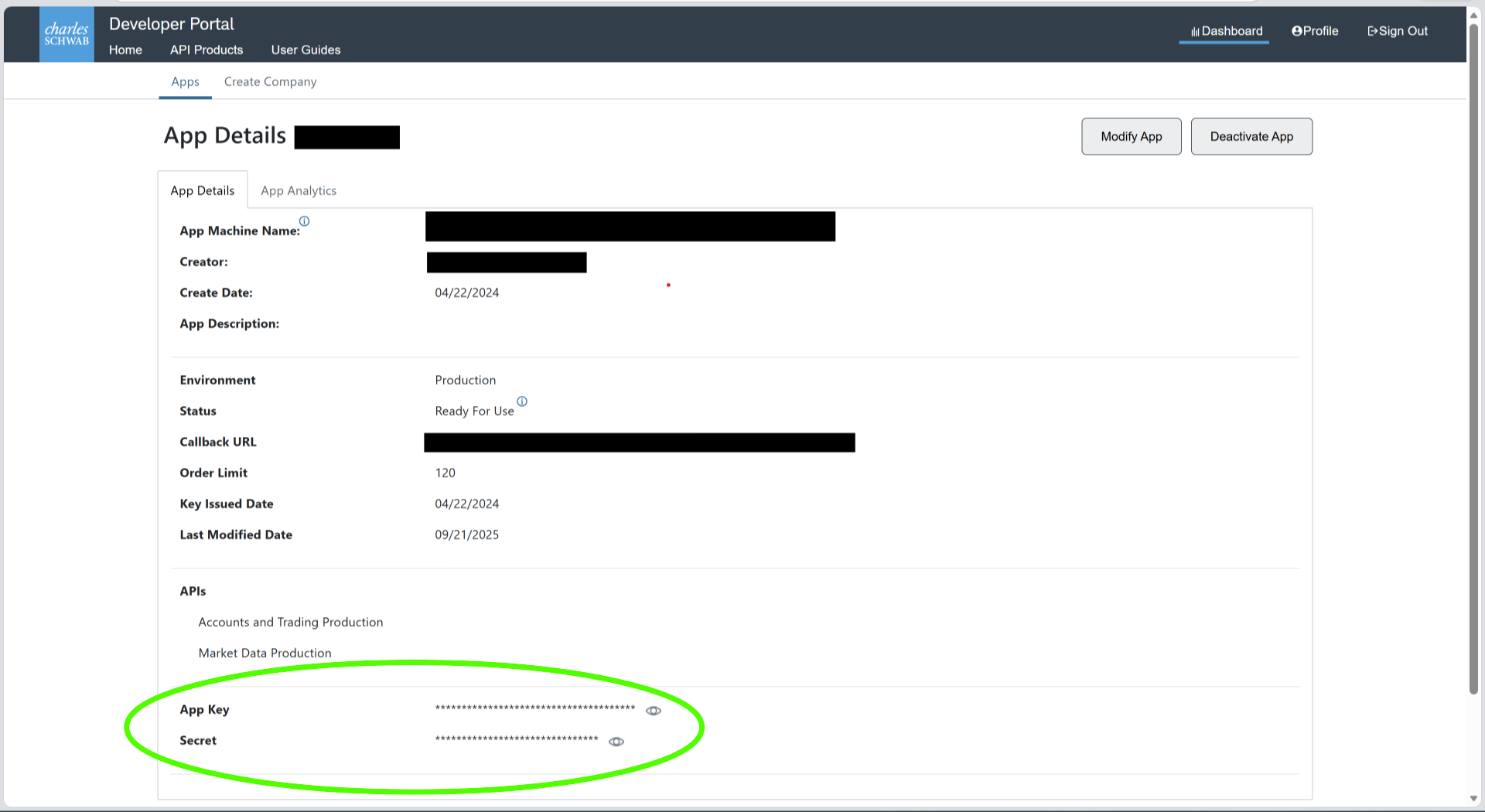 Once your app has been approved, you may proceed to document your Schwab App Key.
