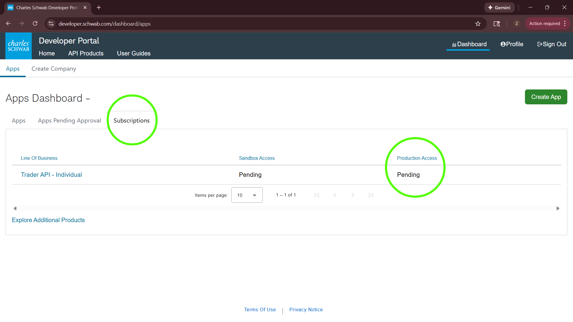 Once your account has been approved, you may proceed to create your Schwab Application.